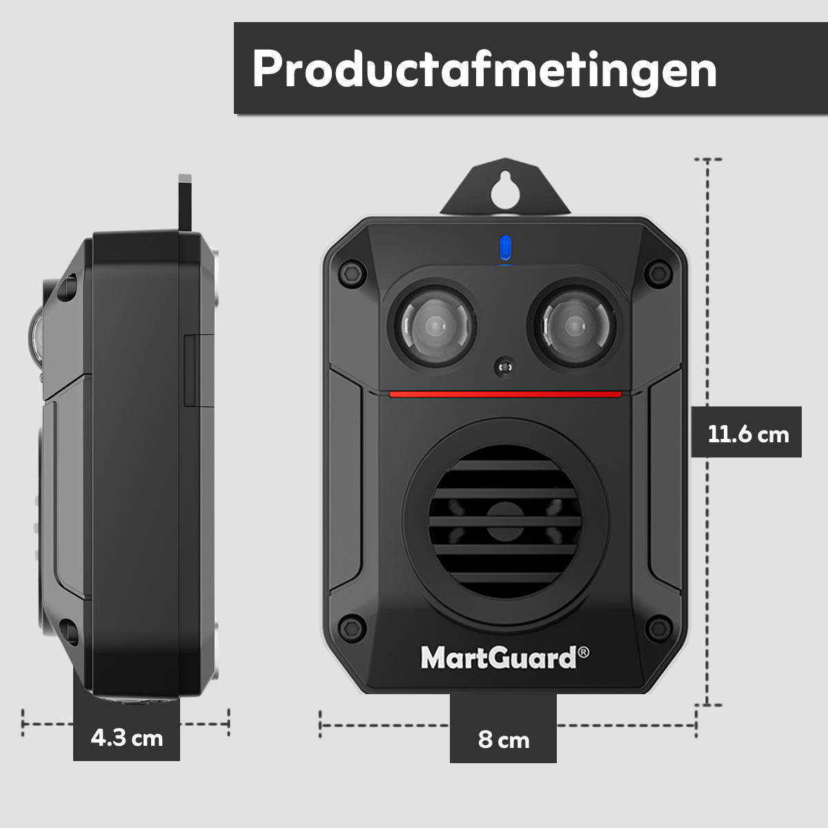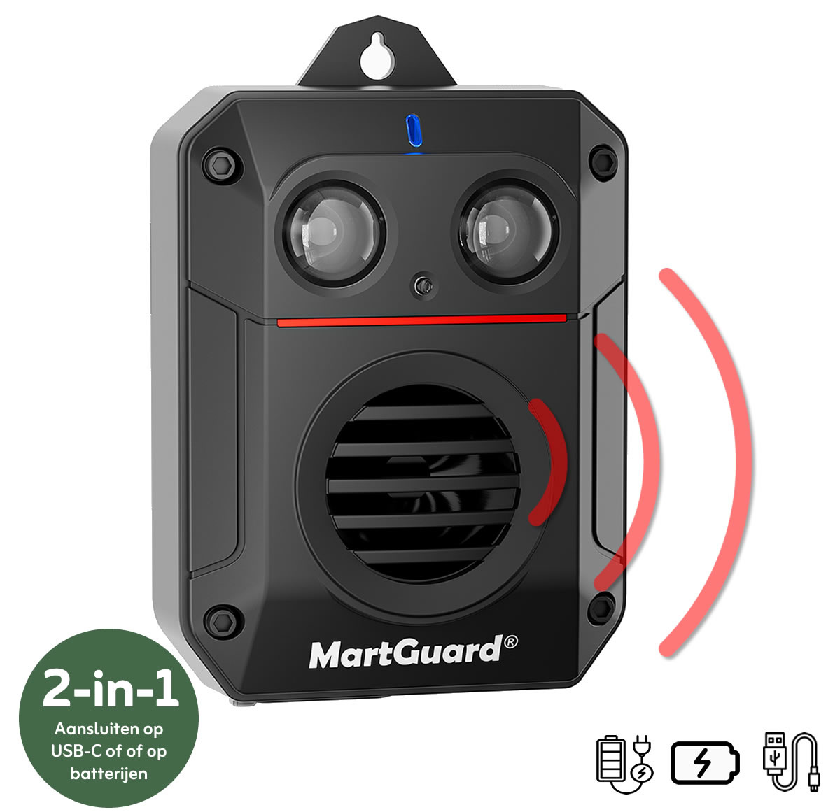 De MartGuard® Bird & Pigeon Secure Pro Battery maakt gebruik van geavanceerde micro-elektronica om krachtige ultrageluidsgolven en flitsende lichten af te wisselen. Deze prikkels verstoren het zenuwstelsel en gedrag van vogels zoals kraaien en duiven. De constante afschrikking zorgt ervoor dat ze zich onveilig voelen en de locatie mijden. Hoewel sommige vogels niet direct vertrekken, raken ze door de aanhoudende signalen hun oriëntatie kwijt en verliezen ze hun comfortzone. Na verloop van tijd zullen ze het gebied permanent vermijden. Naast vogels, verjaagt het apparaat ook katten, marters, honden en andere dieren.