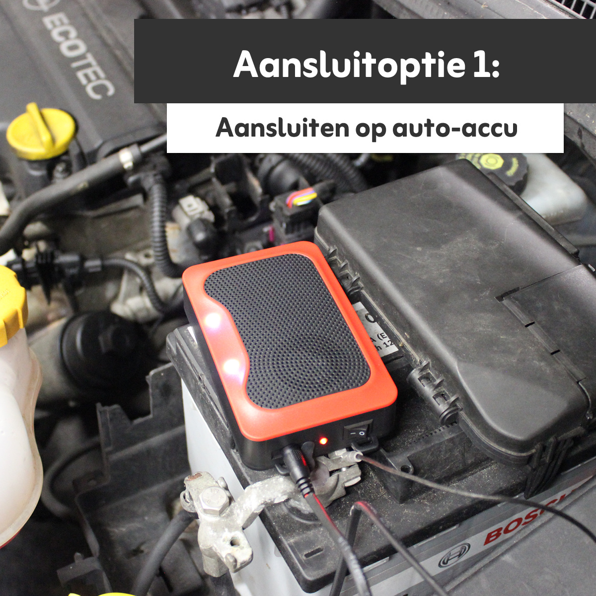 Dit apparaat biedt een ongeëvenaarde flexibiliteit doordat het in vrijwel elke situatie gebruikt kan worden. Installeer het eenvoudig onder de motorkap van uw auto, caravan, vrachtwagen, of een ander voertuig, en sluit het direct aan op de accu met de meegeleverde aansluitkabels. Daarnaast kunt u kiezen voor een aansluiting via continu-stroom met de DC5-12V/USB. Ook deze kabel wordt meegeleverd, zodat u het gemakkelijk op een USB-stekker (apart verkrijgbaar) kunt aansluiten.