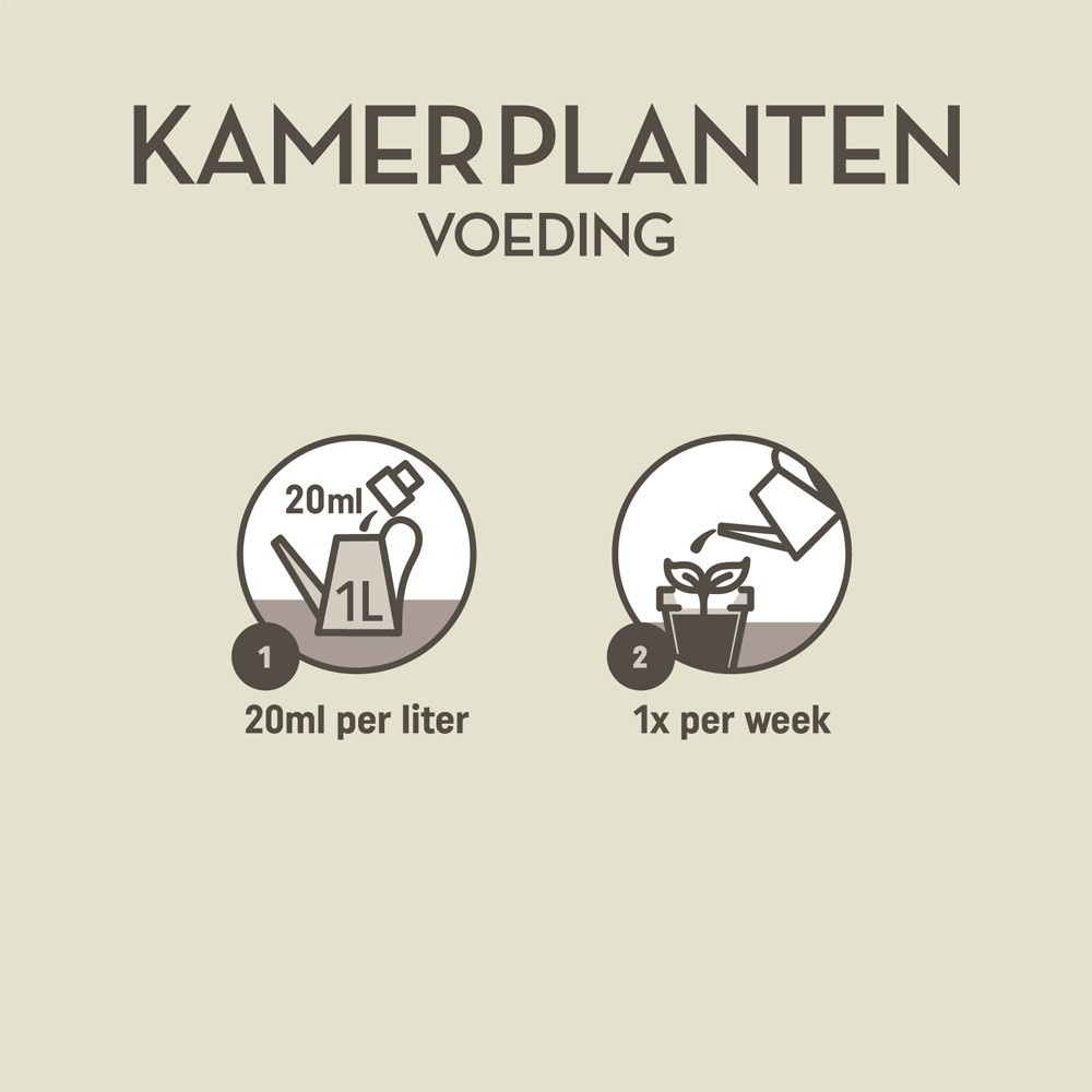 Schud de fles goed voor gebruik en voeg 1/2 dop (14 ml) per liter water toe. Voed je planten wekelijks van februari tot en met oktober. In de wintermaanden de dosering halveren. Voeg de voeding toe aan het gietwater en maak de gieter en dop schoon na gebruik.