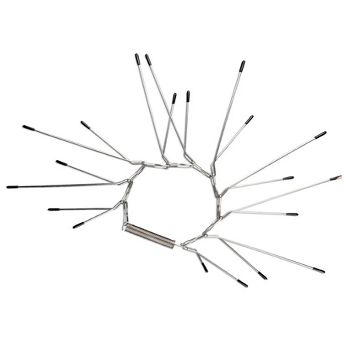 De pinnen steken rondom uit en nemen de “grip” weg die dieren nodig hebben om omhoog te klimmen. De kraag creëert zo een 360° fysieke barrière; één of meerdere ringen op strategische plekken (bijv. onder de dakgoot of bij schuren/klimhulpjes) blokkeren de route naar het dak.