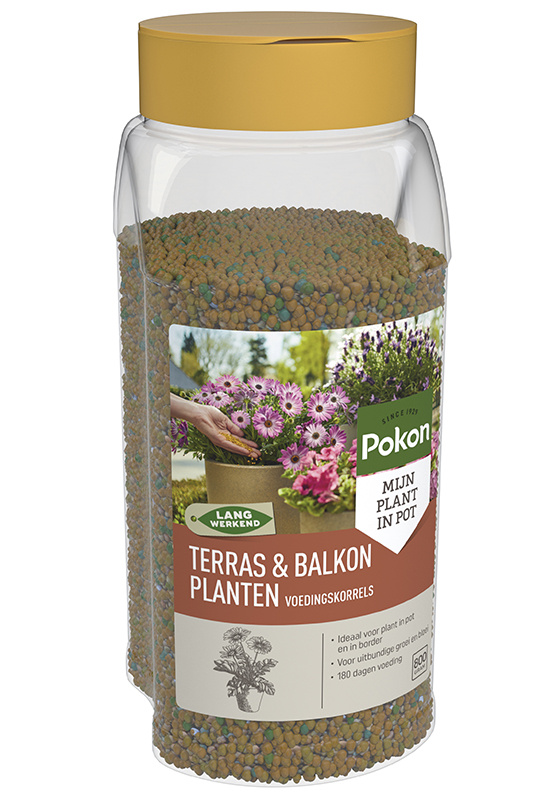 Wil je jouw terras- en balkonplanten laten stralen? Pokon terras & balkon planten voedingskorrels geven tot 180 dagen voeding, zodat jouw planten gezond en uitbundig bloeien. Deze slimme korrels geven voedingsstoffen geleidelijk af, afhankelijk van vocht en temperatuur, zodat je planten precies krijgen wat ze nodig hebben op het juiste moment.